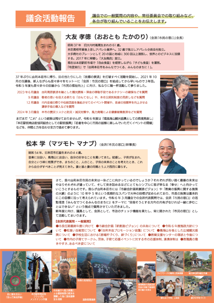 市民の窓口 由利本荘市議会会派「市民の窓口」 2021年12月22日 shimimado http://shiminnomadoguchi.jp/wp-content/uploads/2022/01/logo-text-1.png 市民の窓口